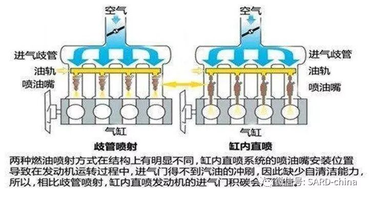 那是不是做好前两部,就肯定没有积碳呢?当然不是了,积碳也分很多种情况。例如直喷发动机就比电喷发动机更容易积碳,那是电喷发动机采用的是歧管喷射(也叫进气道喷射),喷油嘴会把燃油和空气混合,把这些淘气的油滴连同油气混合气吹到汽缸里,然后随着火花塞,“噗”的一声,一把火灰飞烟灭。