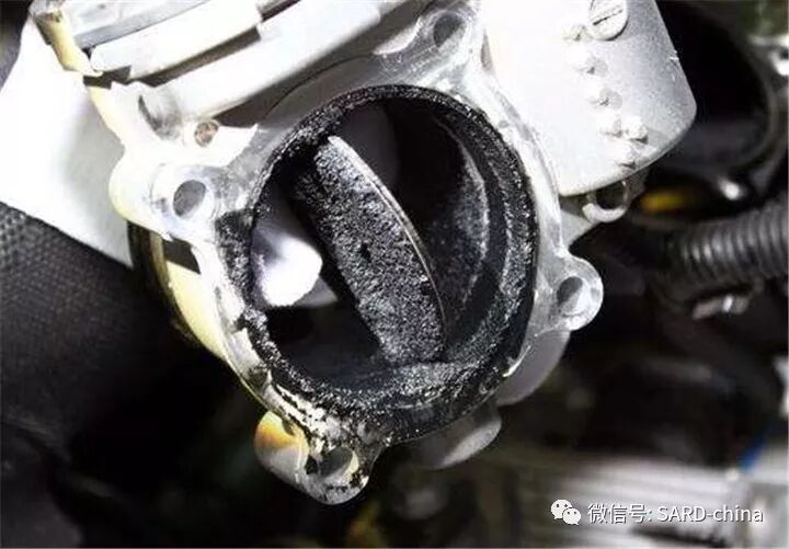 这些跑到进气道的机油小淘气,就是积碳的罪魁祸首!这些油滴会附着在进气道内壁、进气门背部乃至节气门上,变成华丽丽的积碳了。